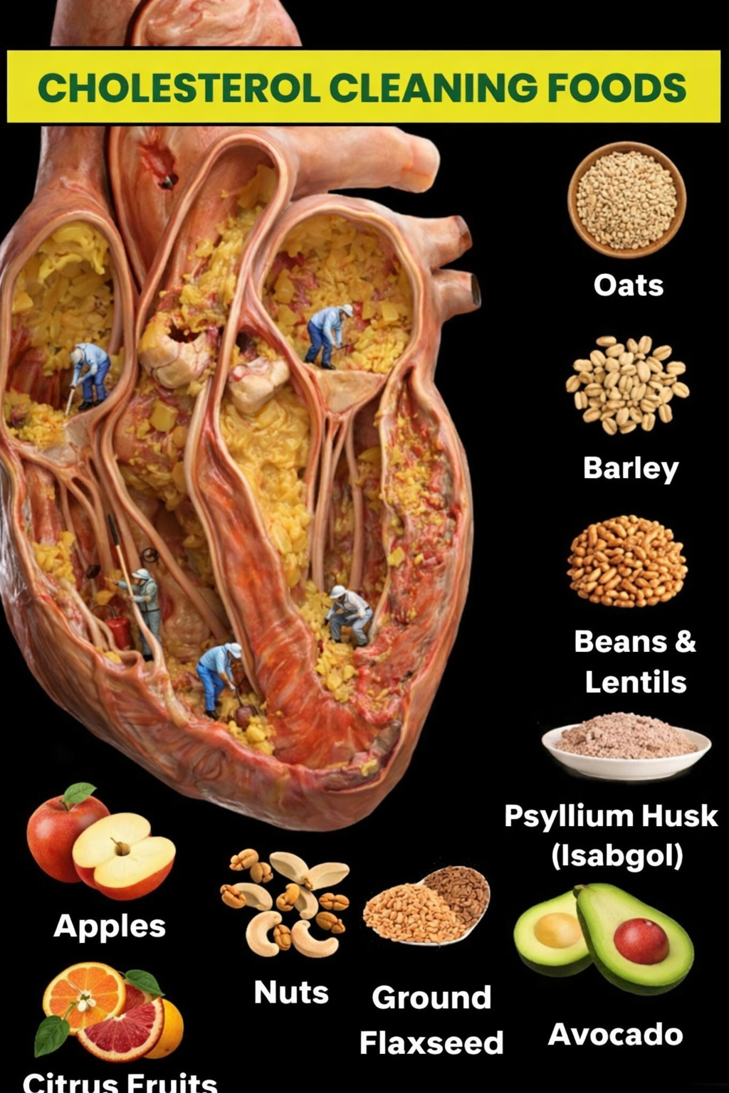 Oats are rich in beta-glucan, a type of soluble fiber that binds to cholesterol in the digestive system and helps remove it from the body. A bowl of oatmeal a day can significantly reduce LDL levels.