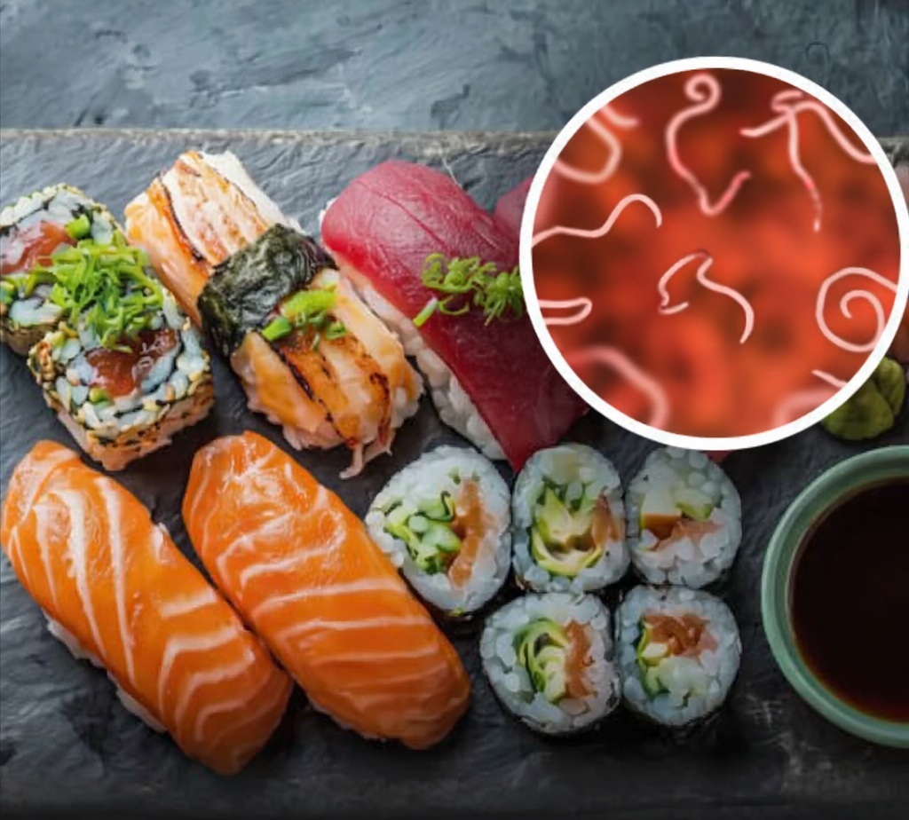 Parasites such as Anisakis worms and tapeworms are sometimes found in raw marine fish. Eating contaminated fish can lead to anisakiasis — a painful gastrointestinal infection.
